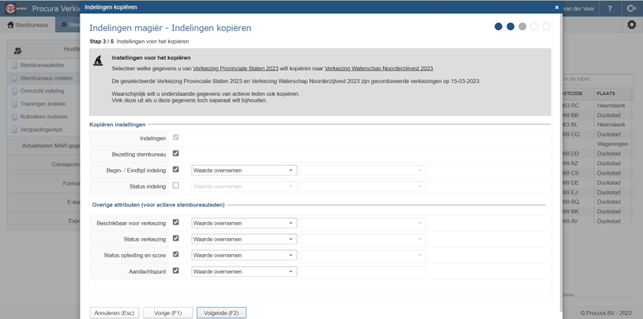 Als u met de applicatie aan de slag gaat en op het punt bent aanbeland dat de indeling van uw stembureaus redelijk compleet zijn kunt u de volledige indeling vanuit Provinciale Staten kopiëren naar uw Waterschapsverkiezing(en).